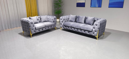 RoyalLuxe Chesterfield Genuine Leather Sofa Set