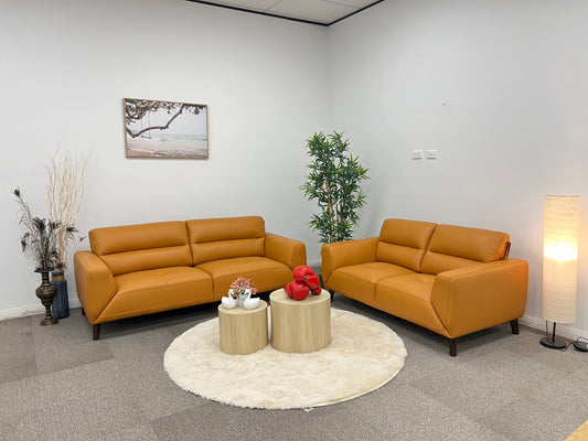 Orange 3 + 2 Seater Genuine Leather Sofa