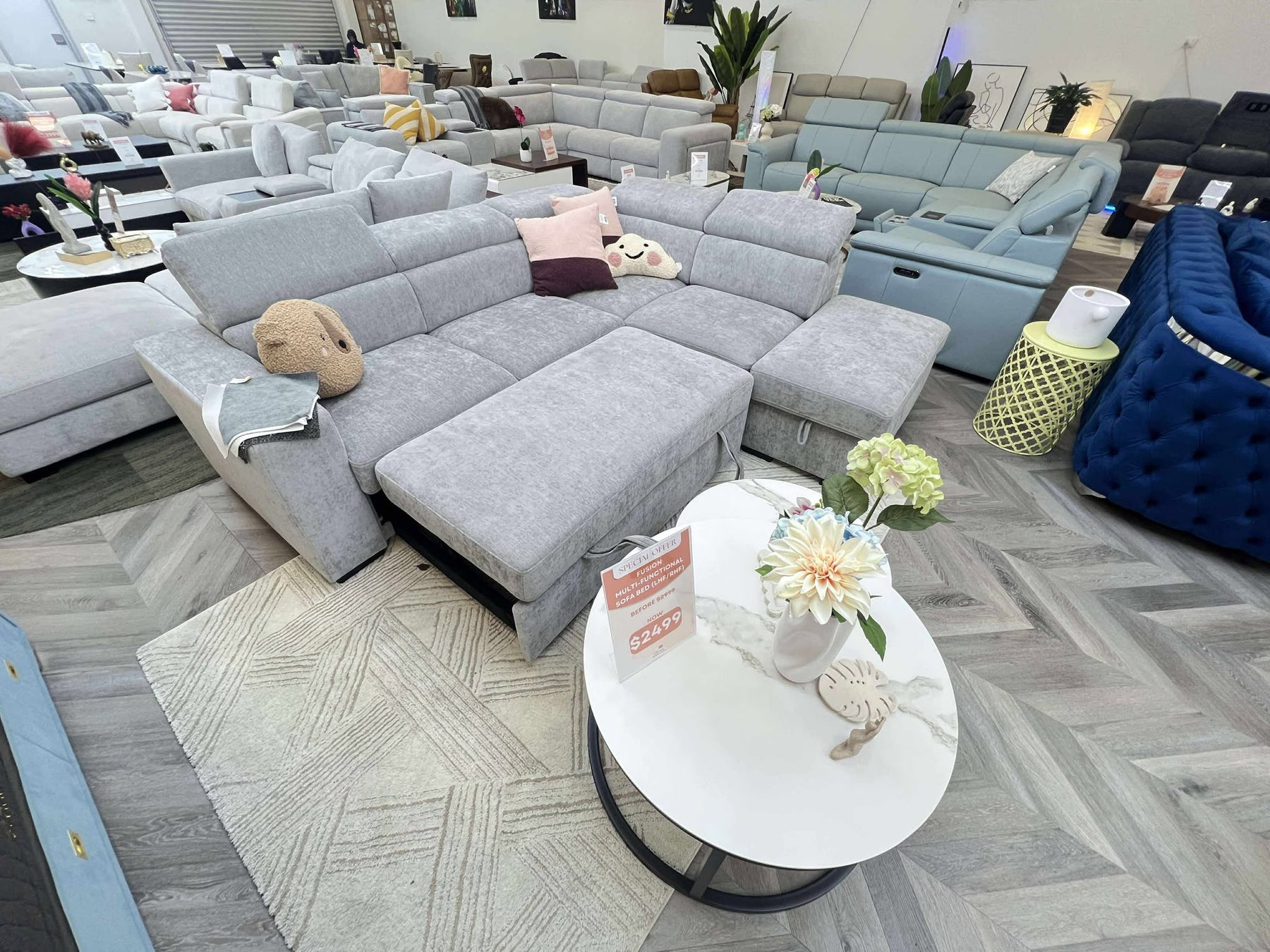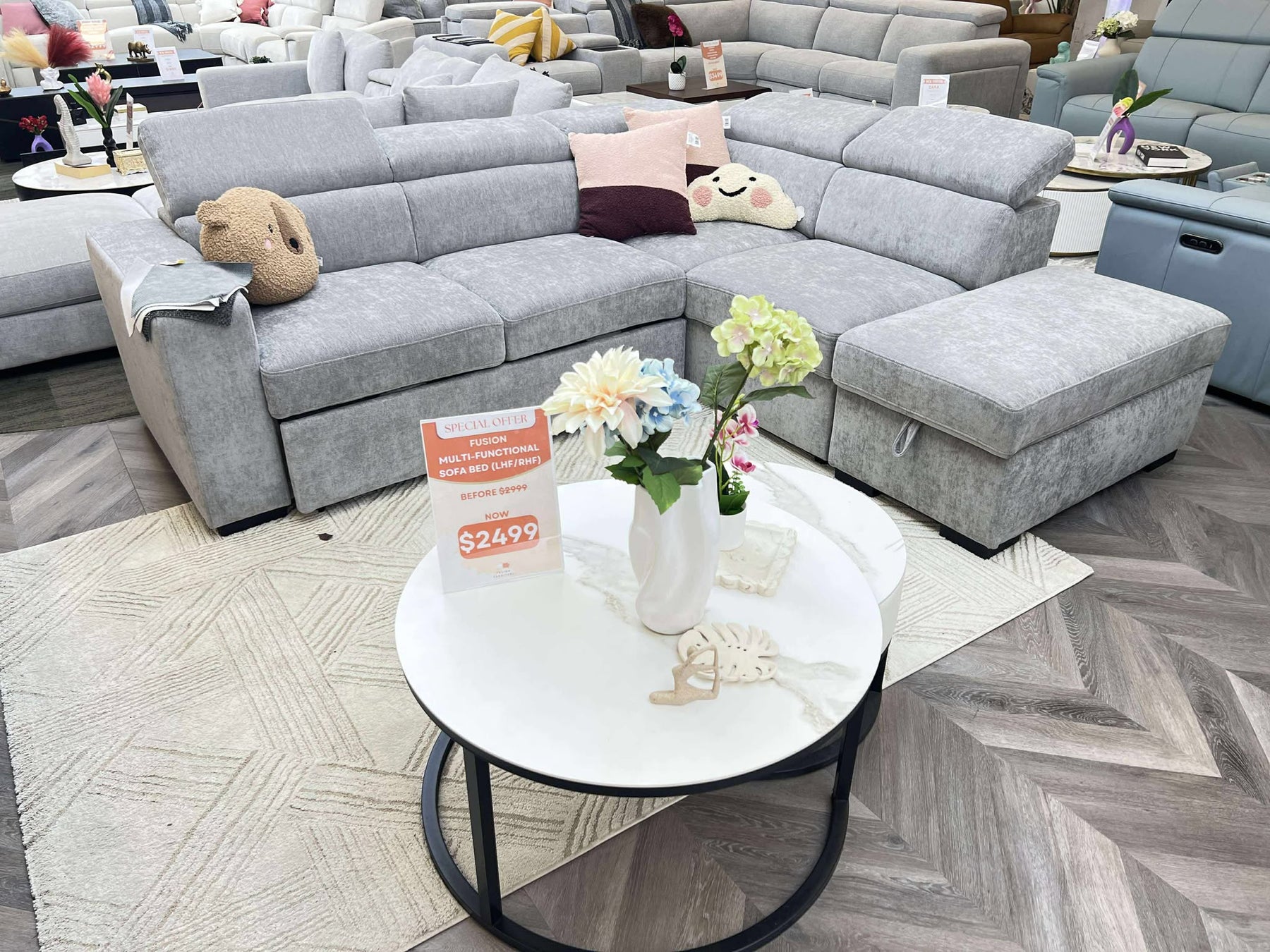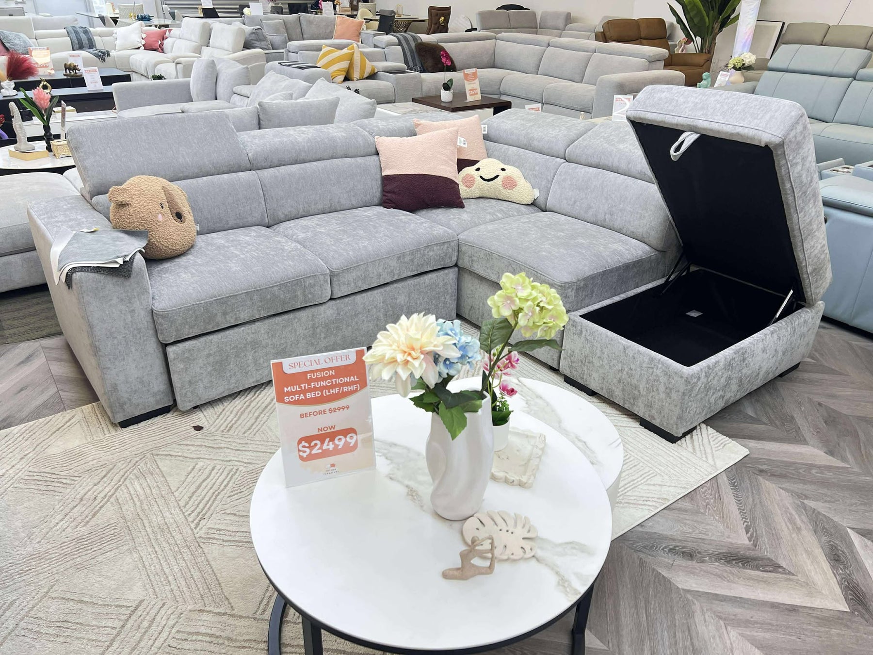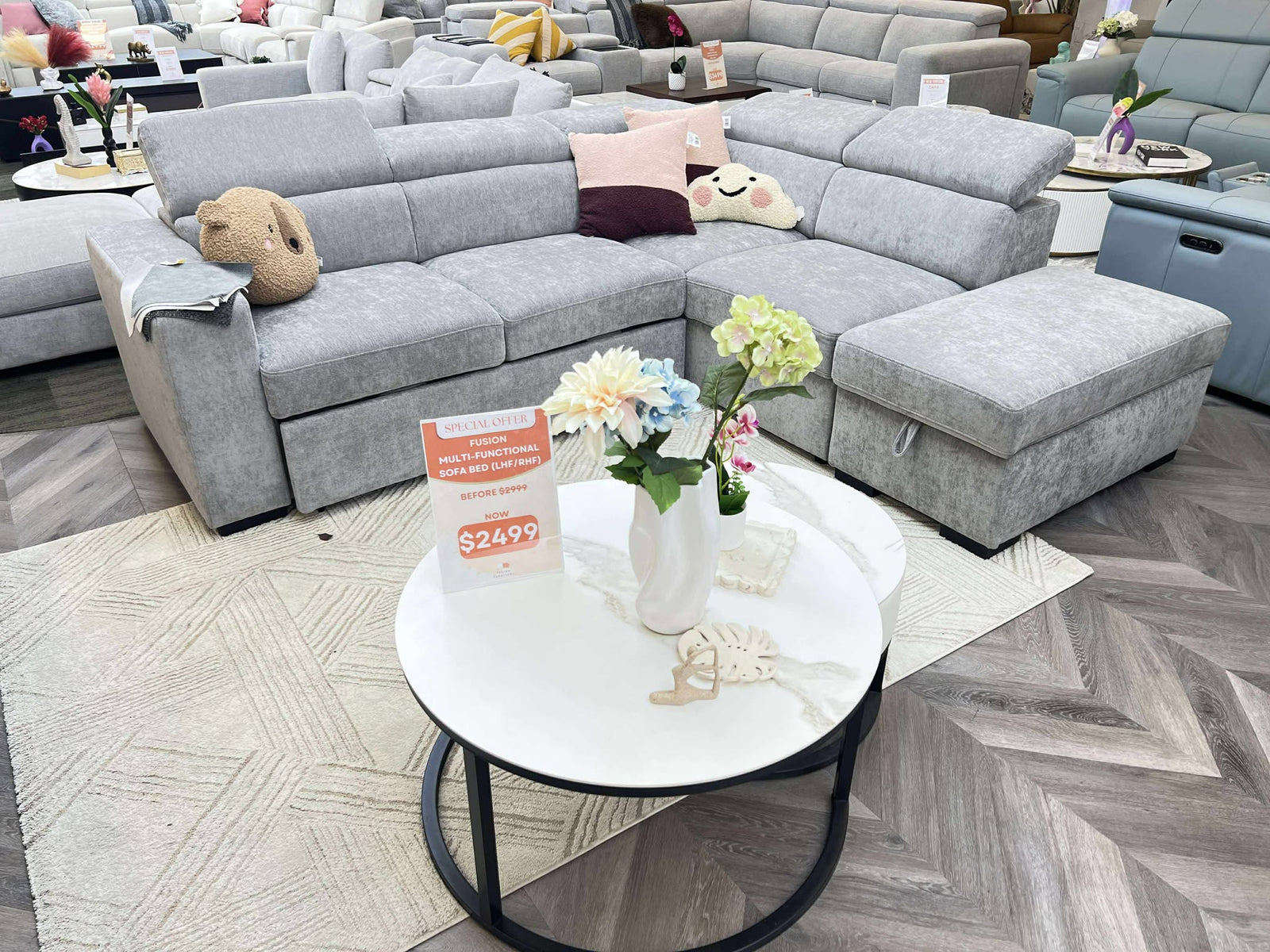 The Fusion Multifunctional Sofa Bed transforms your living space with its seamless sofa-to-bed conversion, adjustable headrests, and storage ottoman perfect for apartments, townhouses, and granny flats.