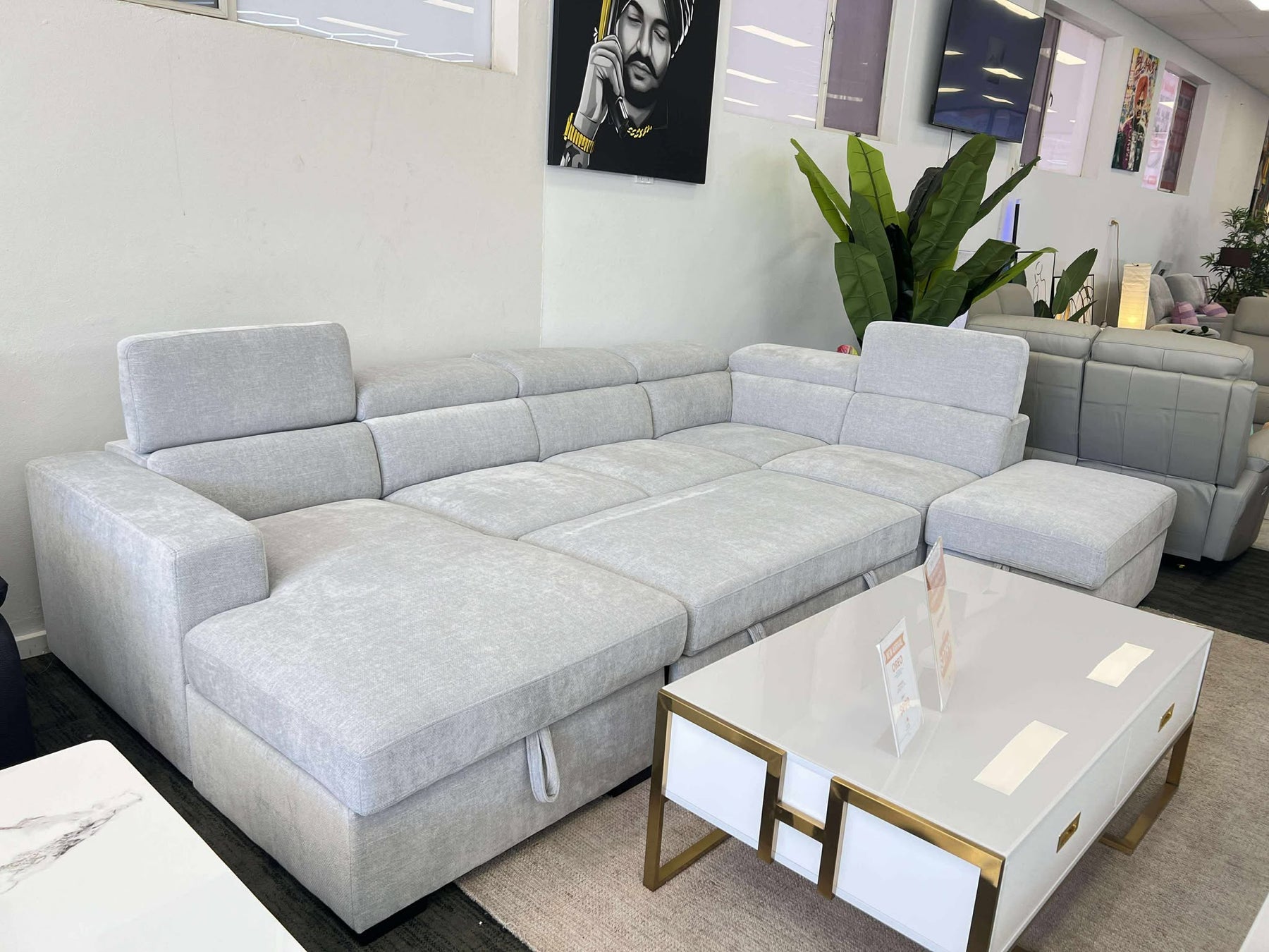 The KAYLA Luxe Sofa Bed transforms your space with smart design that works as hard as you do. Upholstered in premium Glamour fabric that feels luxurious against your skin, this multifunctional piece delivers elegant style during the day and converts to a comfortable bed when overnight guests arrive. The hidden storage in both the chaise and ottoman keeps blankets, pillows, and extra bedding tucked away but instantly accessible, while adjustable headrests let everyone find their perfect comfort position.